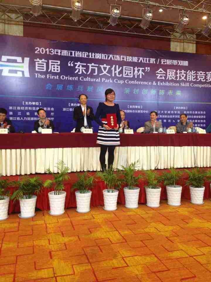 11月1日至11月3日, 2013年浙江省企业岗位大练兵技能大比武——会展策划师暨首届“东方文化园杯”会展技能大赛在杭州萧山东方文化园太虚湖假日酒店火热举办。在学生组的比赛中,我院学生在浙江省四十三支队伍里,名列第一、第二名,荣获一等奖、二等奖,并且为我校赢得了“优秀组织奖”的荣誉称号。