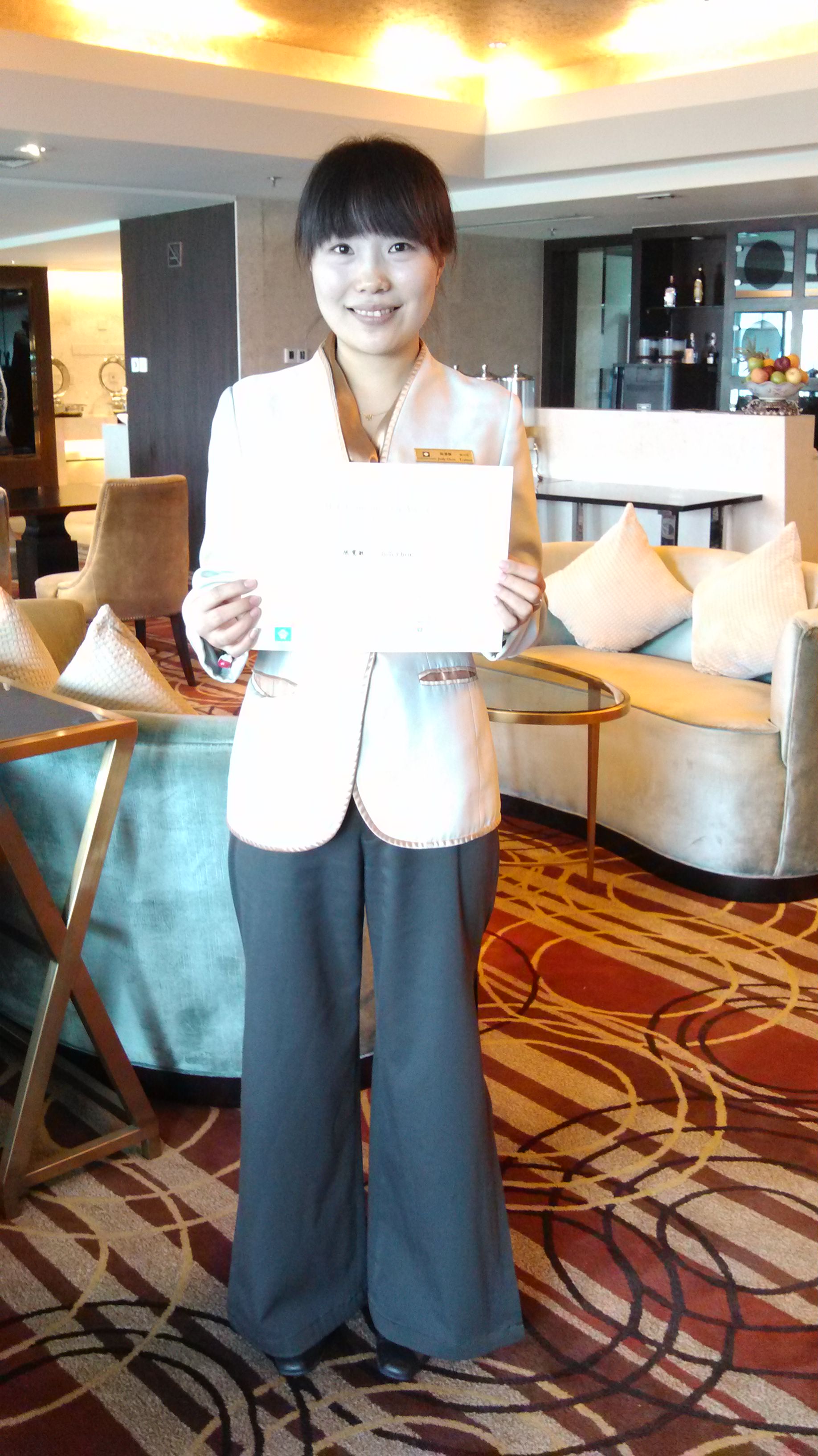 陈慧敏同学的酒店荣誉证书
