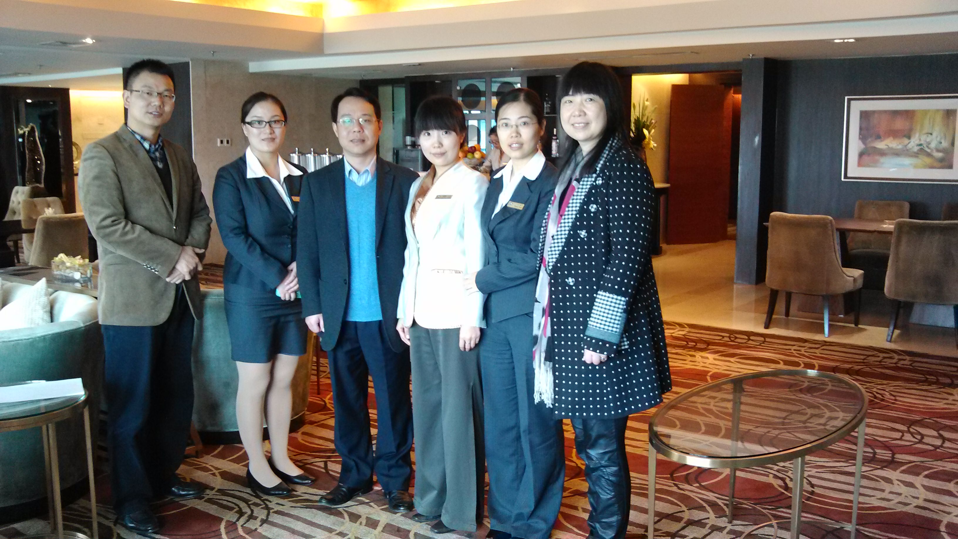 11月15日学院领导赵飞、杨富荣、钟江顺一行前往杭州温德姆至尊豪廷大酒店看望了在那实习的2010级实习生陈慧敏同学,并详细了解实习情况,听取了酒店人力资源部经理和前厅经理对该同学的肯定和表扬,陈慧敏和曾实习过的梁竞之同学在实习过程中表现都很多次得到住店客人的表扬和酒店的嘉奖,为学院争得荣誉,为学弟学妹有更好的实习打拼基础;另外学院和酒店还商谈了有关实习基地建设和酒店人才培养等相关事宜。