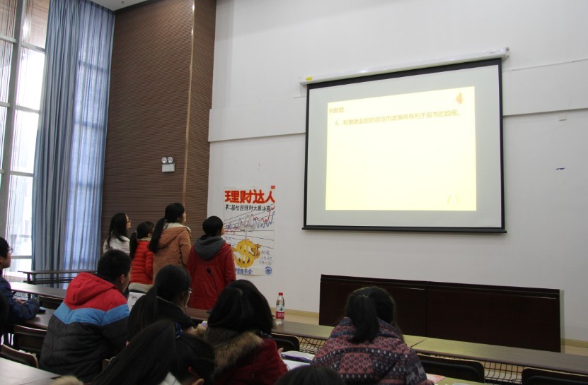第一环节结束后,两位老师就六支队伍的表现,指出了他们的不足,发表自己的看法并给出了建议。在第二环节“稳中取胜”——必答题部分,六支队伍在抽取题目后分别做了现场答题,每支队伍各显神通。接下来进入了最紧张刺激的“风险时速”——抢答题部分,六组队伍进行了激烈的抢答,现场气氛活跃。随着活动进入尾声,比赛进入了最后一轮较量“风云变幻”——风险题部分,六组根据自己的实力以及本组的得分情况选择不同的分值题进行答题。