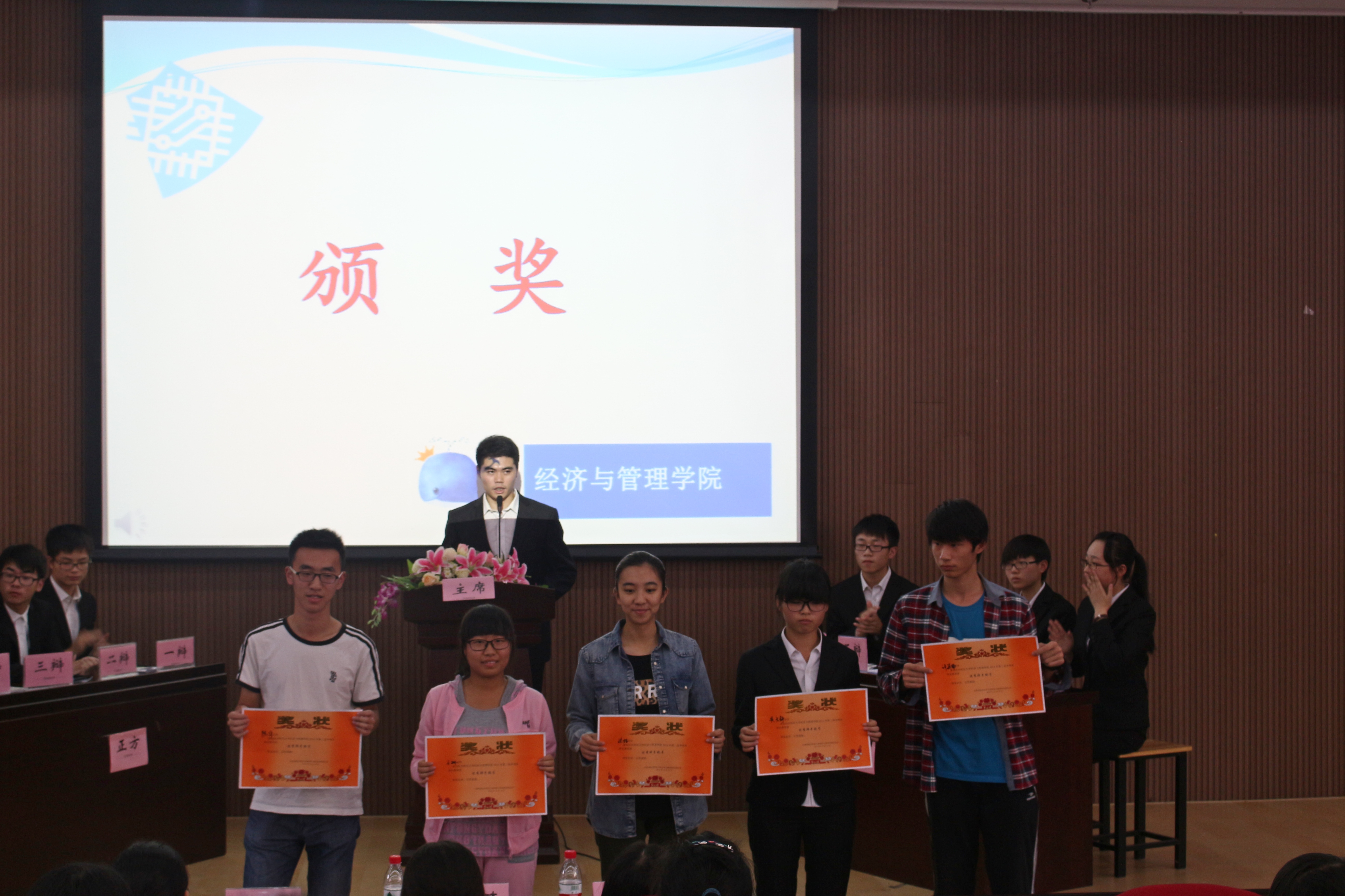 最后,许嘉楠,陈宇,王珊,黄文静,洪喆同学获得了“优秀辩手”的称号,“最佳辩手”的称号由决赛正方二辩陆文俊同学获得,而旅管141班则获得了第二届争鸣杯辩论赛的总冠军。