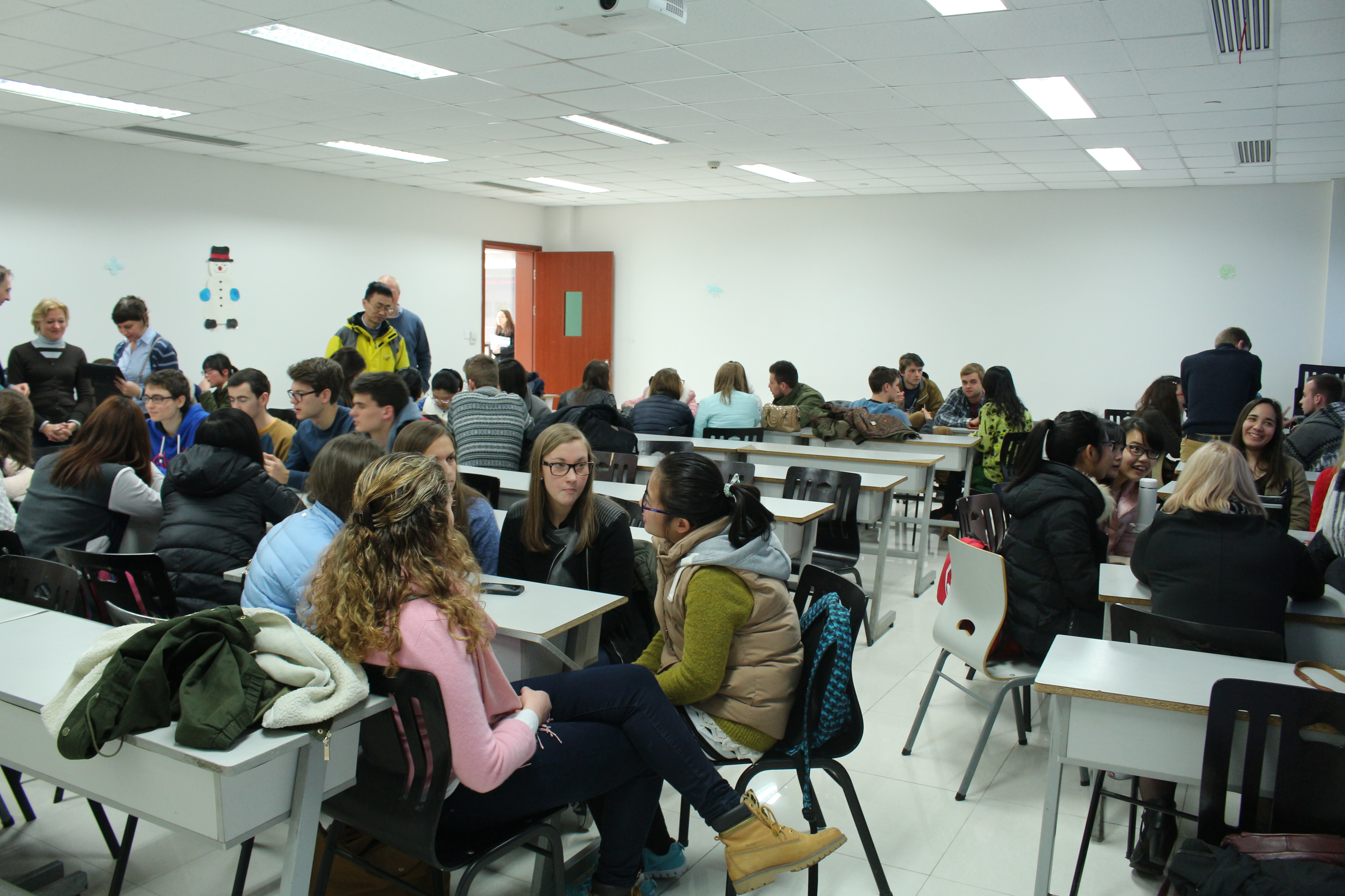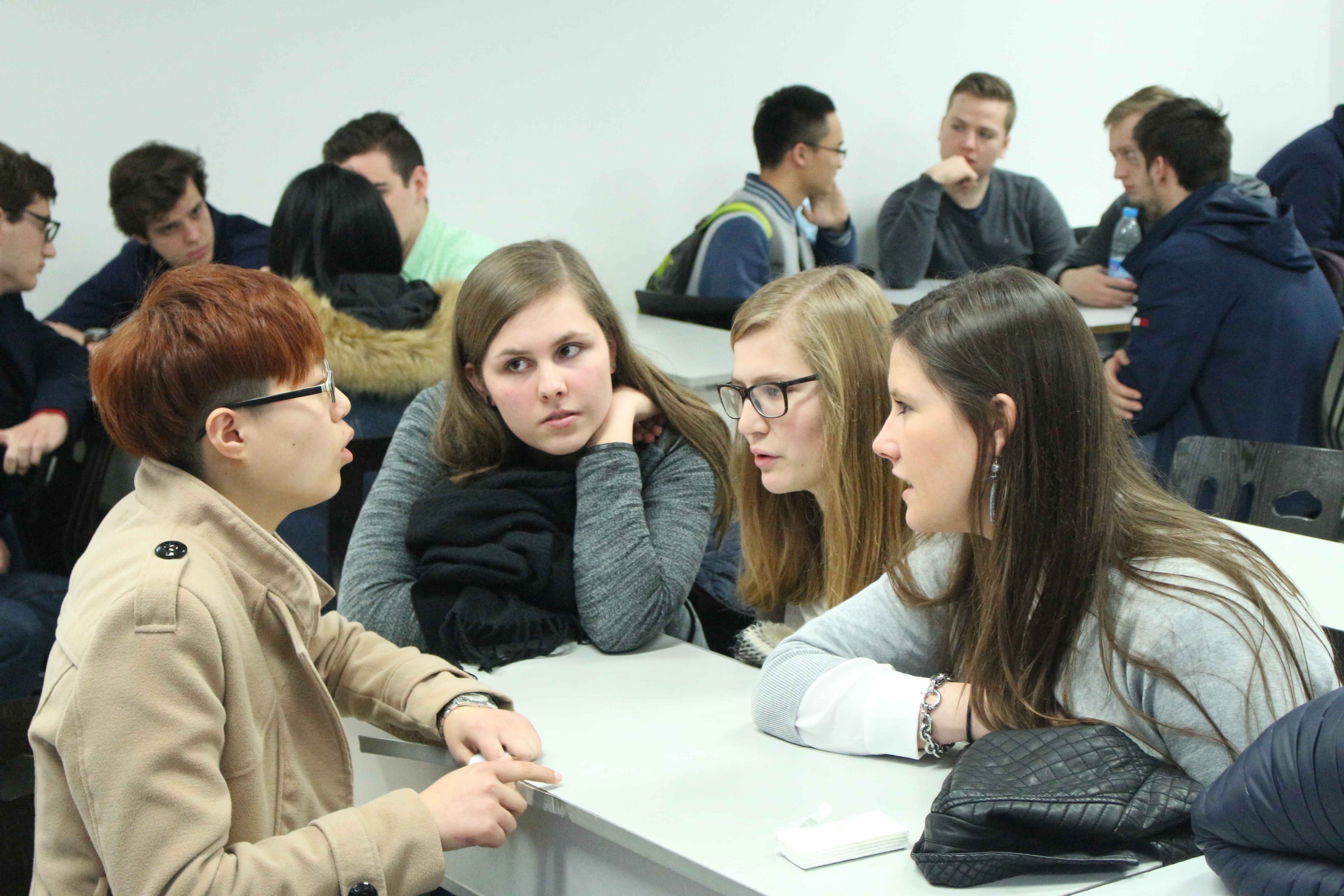 在团委副书记葛雨晨的主持下,我院20多名学生与Vives大学的来访学生们展开了热烈的交流讨论。同学们就各自专业进行了深入的交谈,双方学生都表示对对方专业有了进一步的认识。渐渐地,同学们的交流变得更加的轻松,交流的话题也从学习拓展到了生活、娱乐等方面。