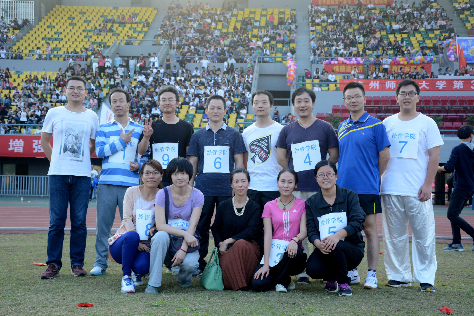 此外,此次运动会我院教工也积极投身于各项比赛中,无论是接力还是短跑,亦或是铅球、跳高,老师们都全力以赴、以身作则,力争为经管创一份荣光。