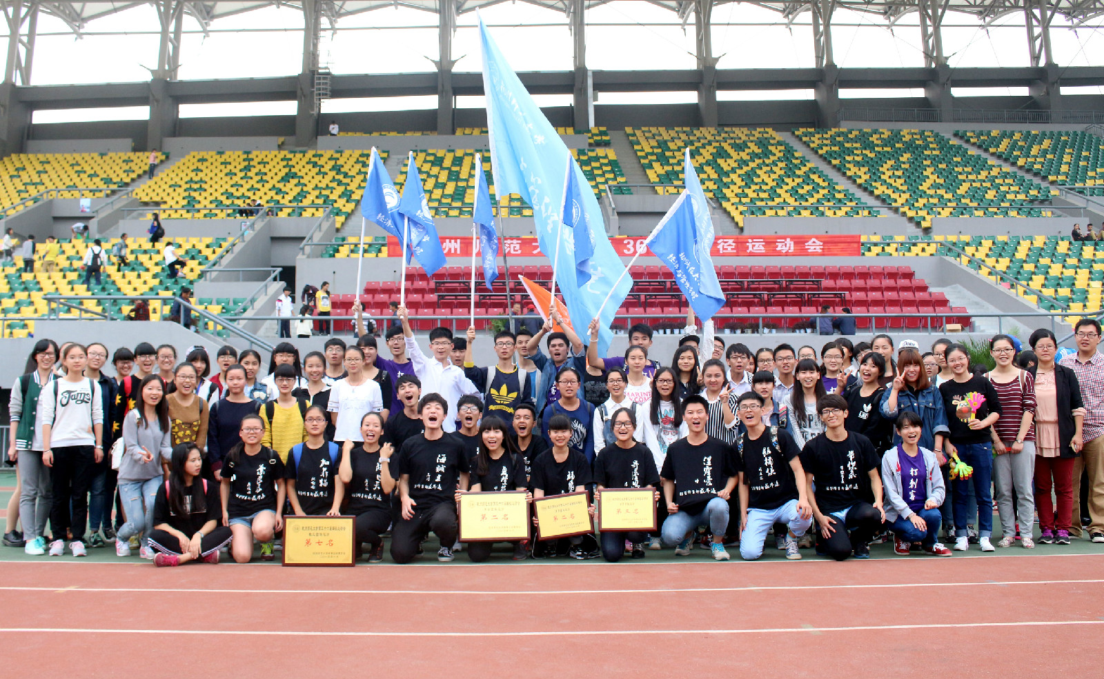 10月23日下午,杭州师范大学第三十六届运动会顺利闭幕。此次运动会我院运动健儿共参加了200米、400米、800米、铅球、标枪、跳远等共35个竞技项目,共获男子团体第二、女子团体第三、男女团体第二、教工团体第七的傲人成绩。