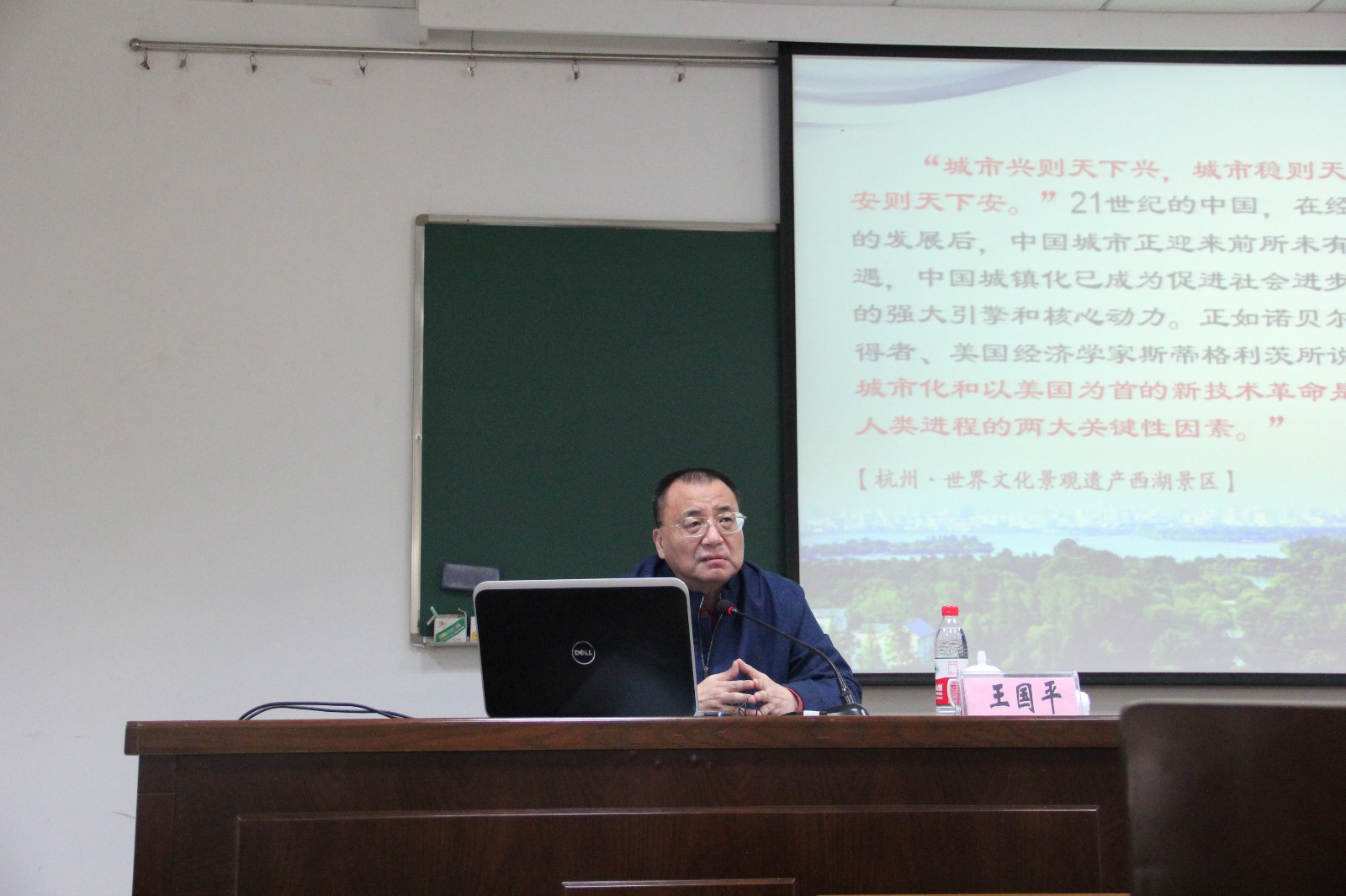 2015年11月2日,原中共浙江省委常委、杭州市委书记王国平莅临我院承办的国家人社部培训项目“互联网金融——变革、创新与风险”高研班,就“新型城镇化与智慧城市建设3.0版的杭州实践”主题,以杭州近年发展为例,向高研班专家学者及浙江各领域企业家代表们做了精彩的报告,分享了他多年以来在智慧城市建设及新型城镇化方面的研究体会。