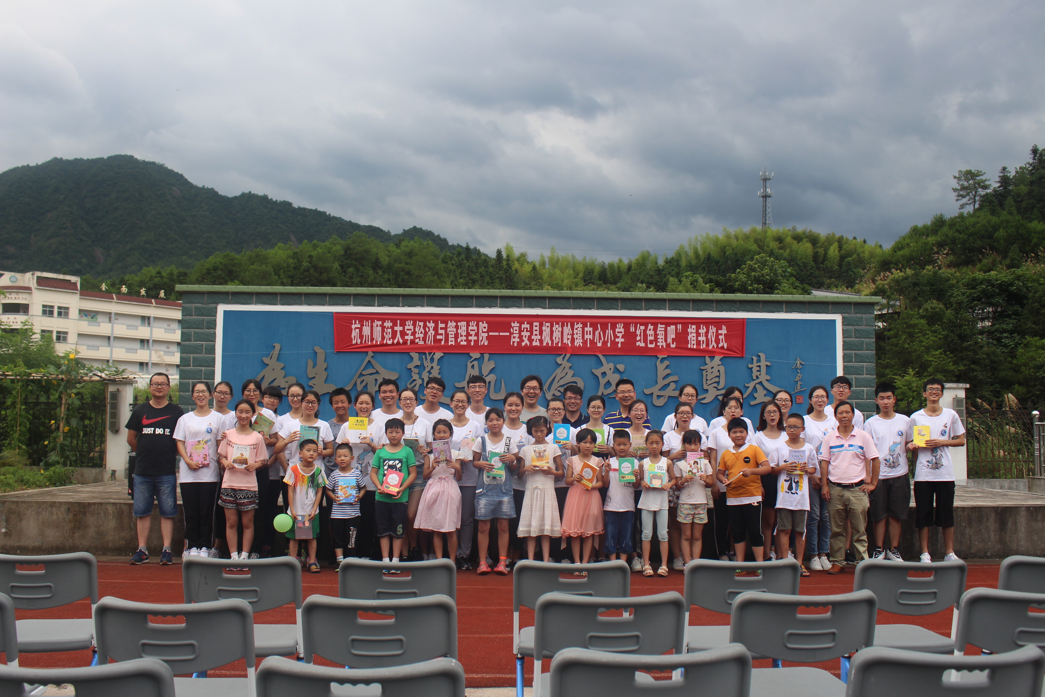 “用图书传递爱心,让知识铸造梦想”。7月8日,杭州师范大学经济与管理学院--枫树岭镇中心小学“红色氧吧”爱心书屋共建项目启动仪式暨图书捐赠仪式在淳安县枫树岭镇中心小学顺利举行。校团委副书记陈勋、我院党委副书记钟江顺、淳安县枫树岭镇团委书记张盛、枫树岭镇中心小学副校长汪仁苏出席本次活动,参加活动还有我院赴枫树岭镇暑期社会实践团队全体师生及枫树岭中心小学学生代表。
