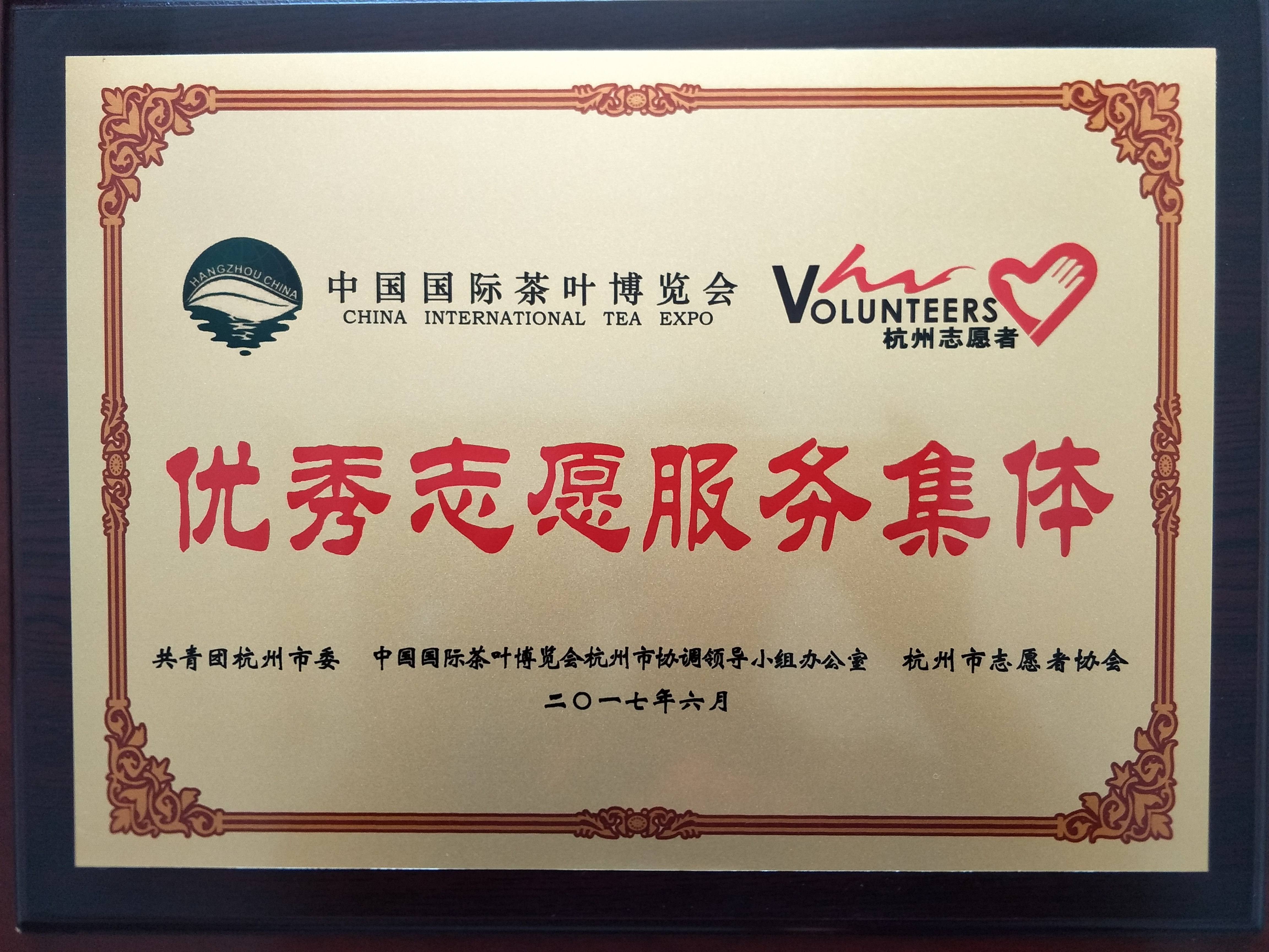 首届中国国际茶叶博览会已于5月15日-5月21日在杭州成功举办,为弘扬先进、树立典型、促进工作,深化杭州志愿服务品牌,共青团杭州市委、中国国际茶叶博览会杭州市协调领导小组、杭州市志愿者协会于6月28日发布《关于表扬首届中国国际茶叶博览会优秀志愿服务集体和优秀志愿者的通报》,对在首届博览会中表现突出的志愿服务集体和个人予以通报表彰,我院团委获优秀志愿服务集体称号,沈吉吉等15位同学获优秀志愿者称号。