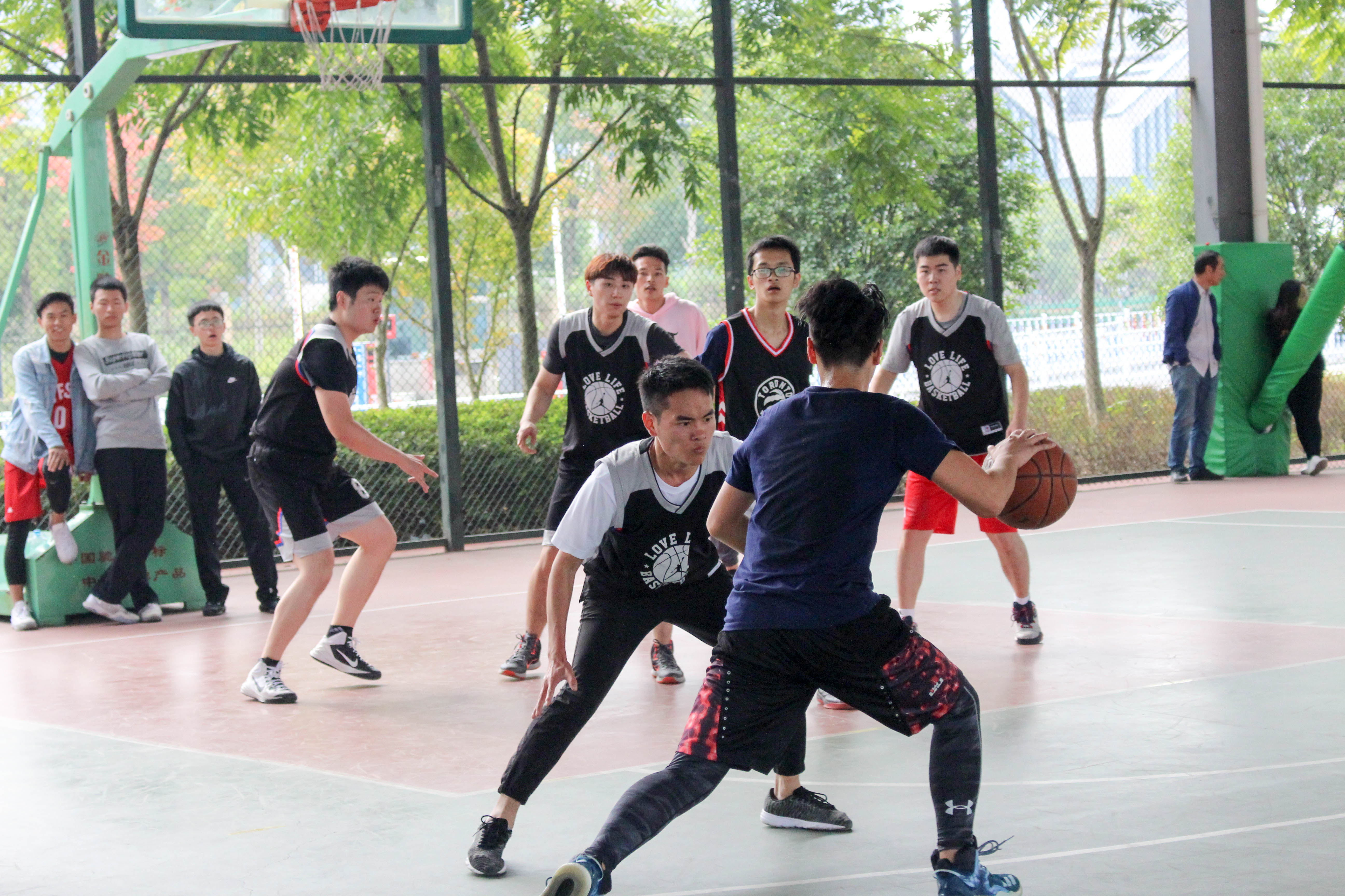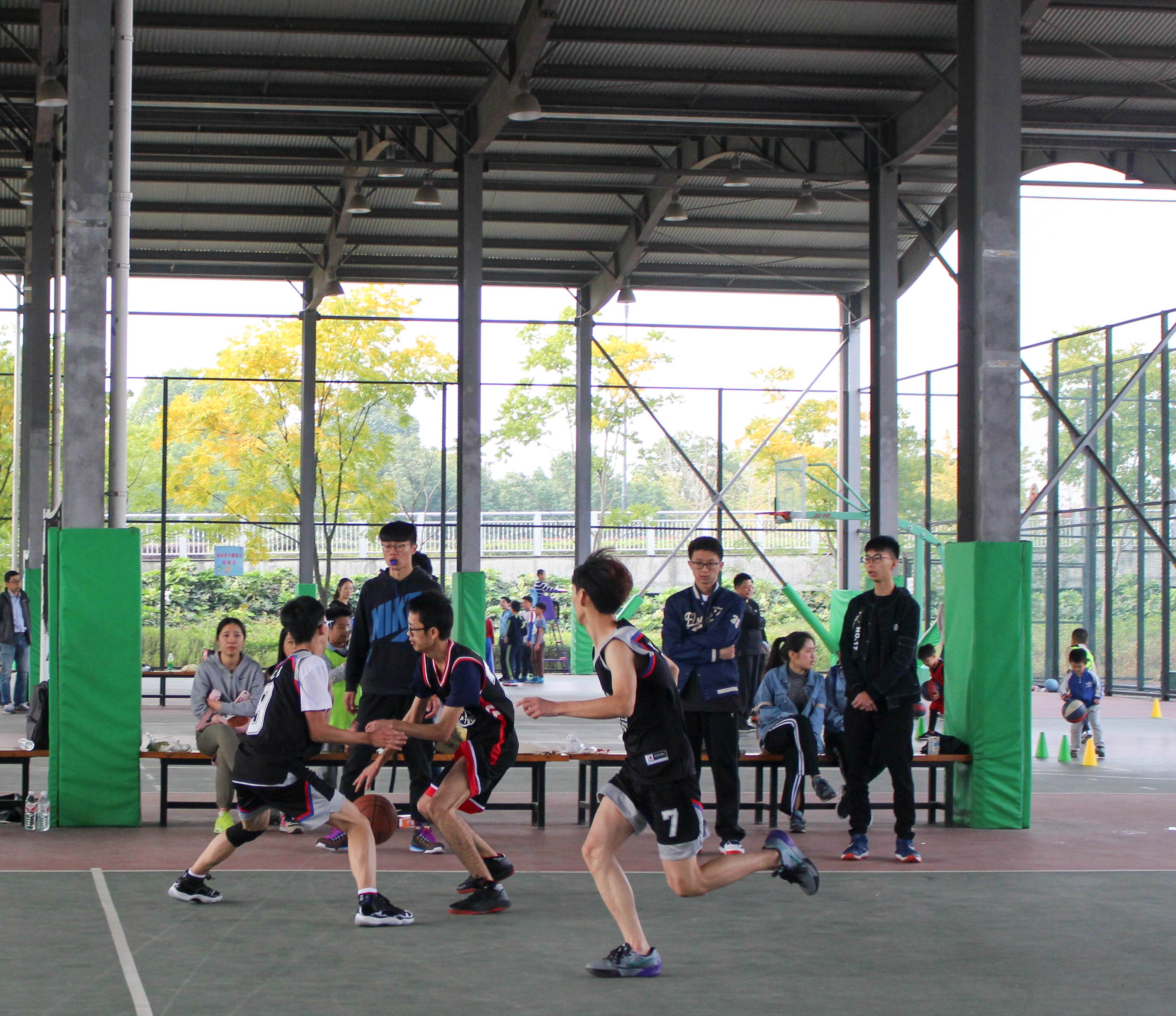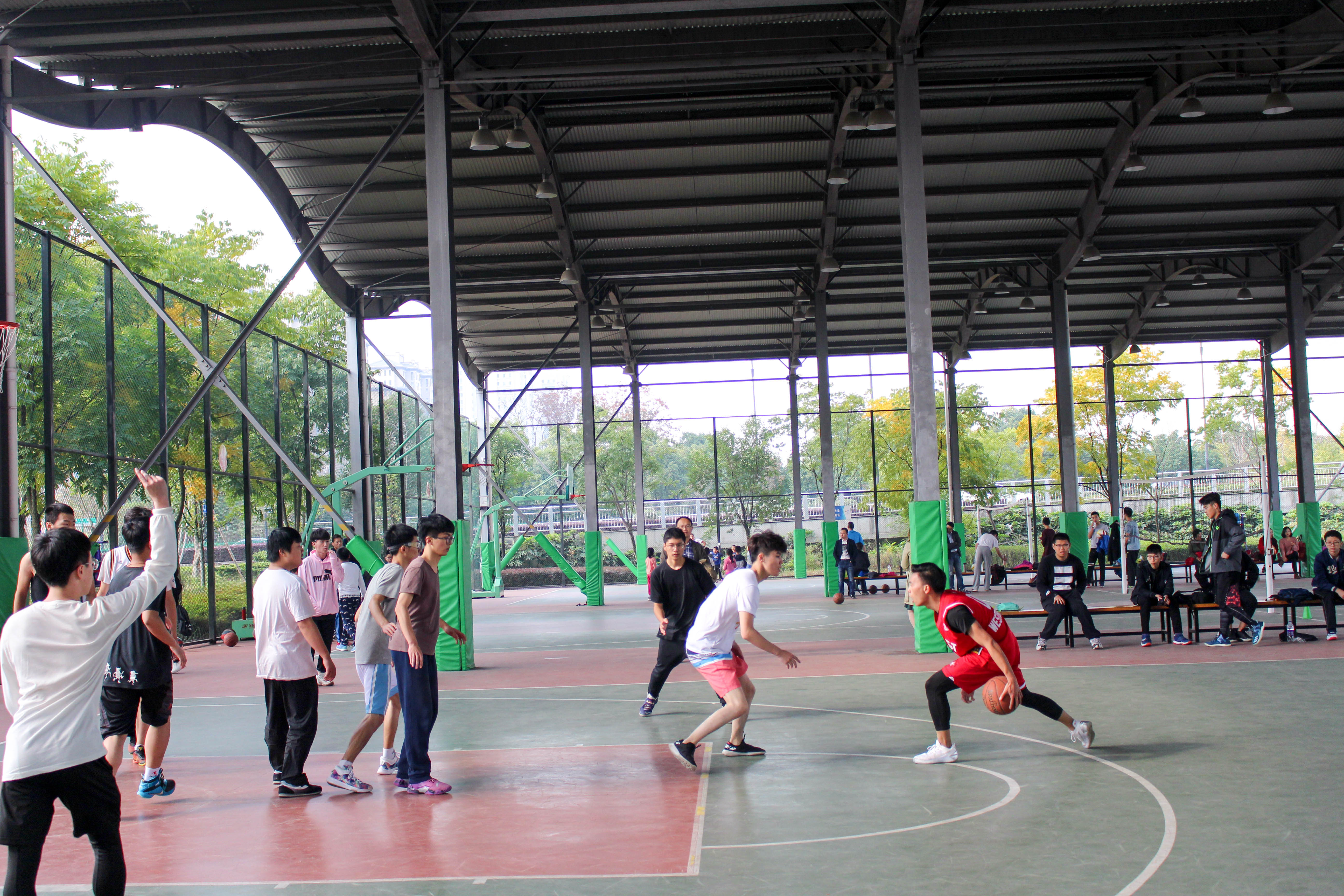 11月12日上午9:00-11:00,经济与管理学院在风雨篮球场上举办了三场篮球赛,这三场比赛分别由经济172对决经济171、经济173对决经济161和旅管172对决会展161、管理171联队。