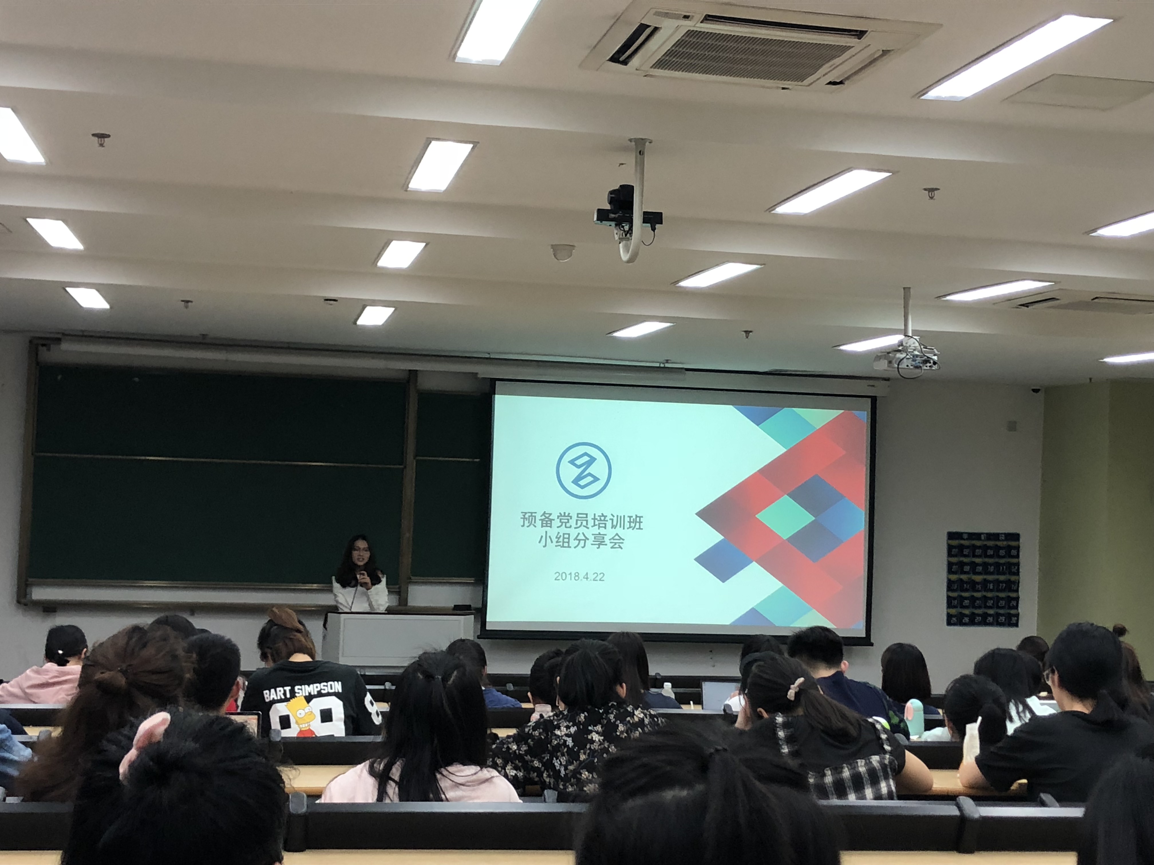 2018年4月22日的晚上18:00,学生预备党员培训班正在如火如荼地开展。来自不同学院的学生预备党员都汇聚在恕园13-201的教室里,对习近平新时代中国特色社会主义思想、党纪党规等党的理论知识进行了学习交流与讨论。