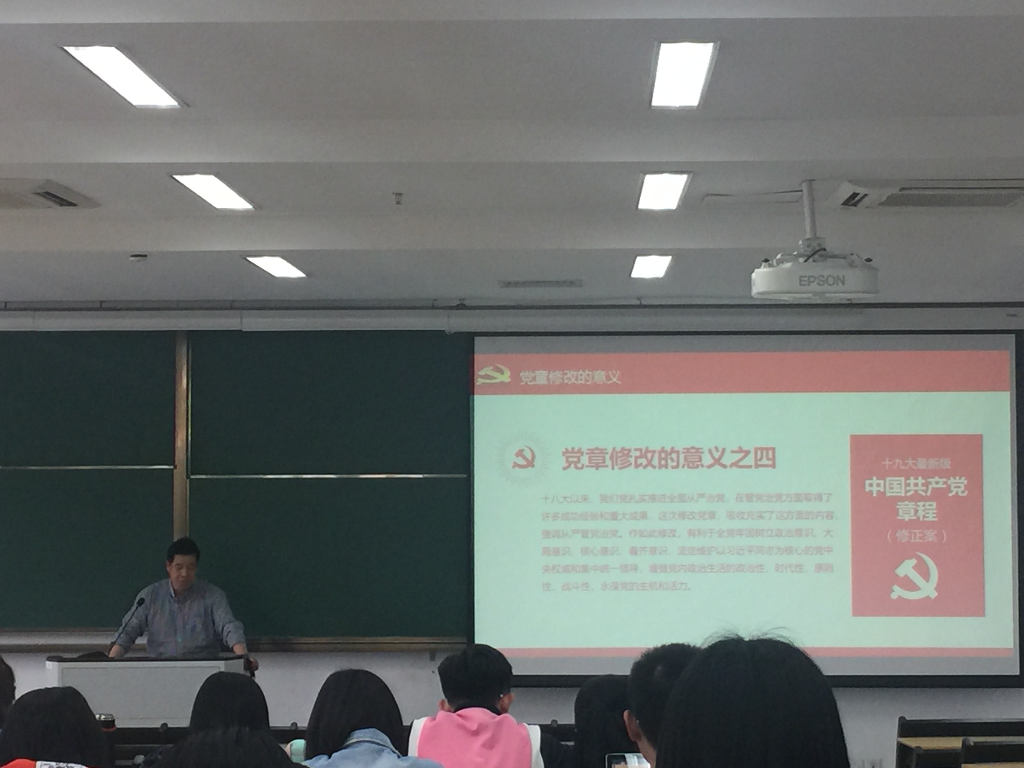 2018年4月25日下午14:00,来自马克思主义学院的赵春华老师在恕园31号楼301给预备党员们解读党章,正确认识当前的形势与任务。到场的有经济与管理学院、阿里巴巴商学院、人文学院、国服学院的各预备党员们。