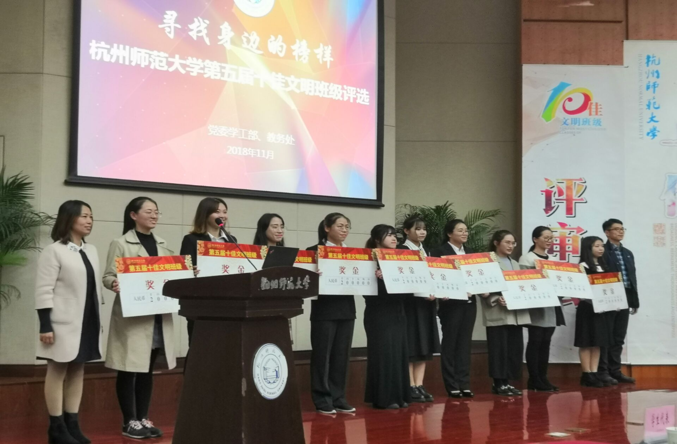 11月14号下午13:30,杭州师范大学第五届“校十佳文明班级”的评选活动在恕园7号楼200座举行,经过激烈角逐,我院经济162班荣获校十佳文明班级称号。接下来就让我们一起走进答辩现场,见证这精彩瞬间。