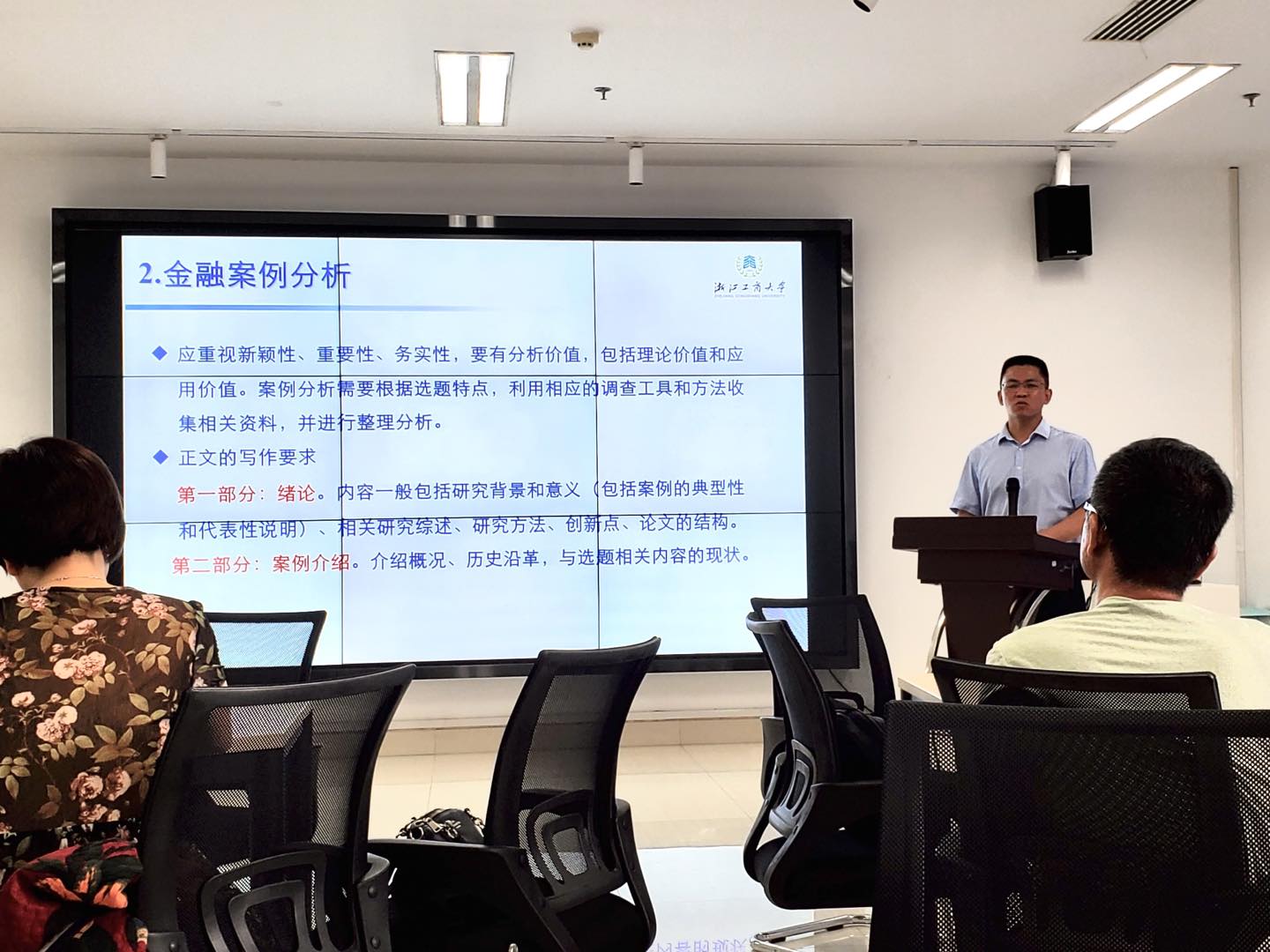 会上,柯院长就现阶段金融专硕学位论文开题的共性问题做了系统、专项的梳理和讲解。柯院长强调,专硕论文不应太学术化,而应紧密结合实践问题。论文的选题是重中之重,选题宜小宜集中,还应当考虑创造性、可行性、重要性;论文形式可以多样,金融案例分析、金融产品设计、金融调研报告都可采用。在写作细节方面,柯院长提醒大家注意,专硕论文不应太过学术化但并不代表理论支撑可有可无,理论的少而精也是文章架构的必要组成部分,要在文章厚度与工作量上下功夫,通过数据、统计学、计量等实证工具提升文章的技术品格。最后,柯院长教导金融专硕的同学一定要养成终生学习的习惯,并与在座的师生进行了面对面的答疑解惑与交流。