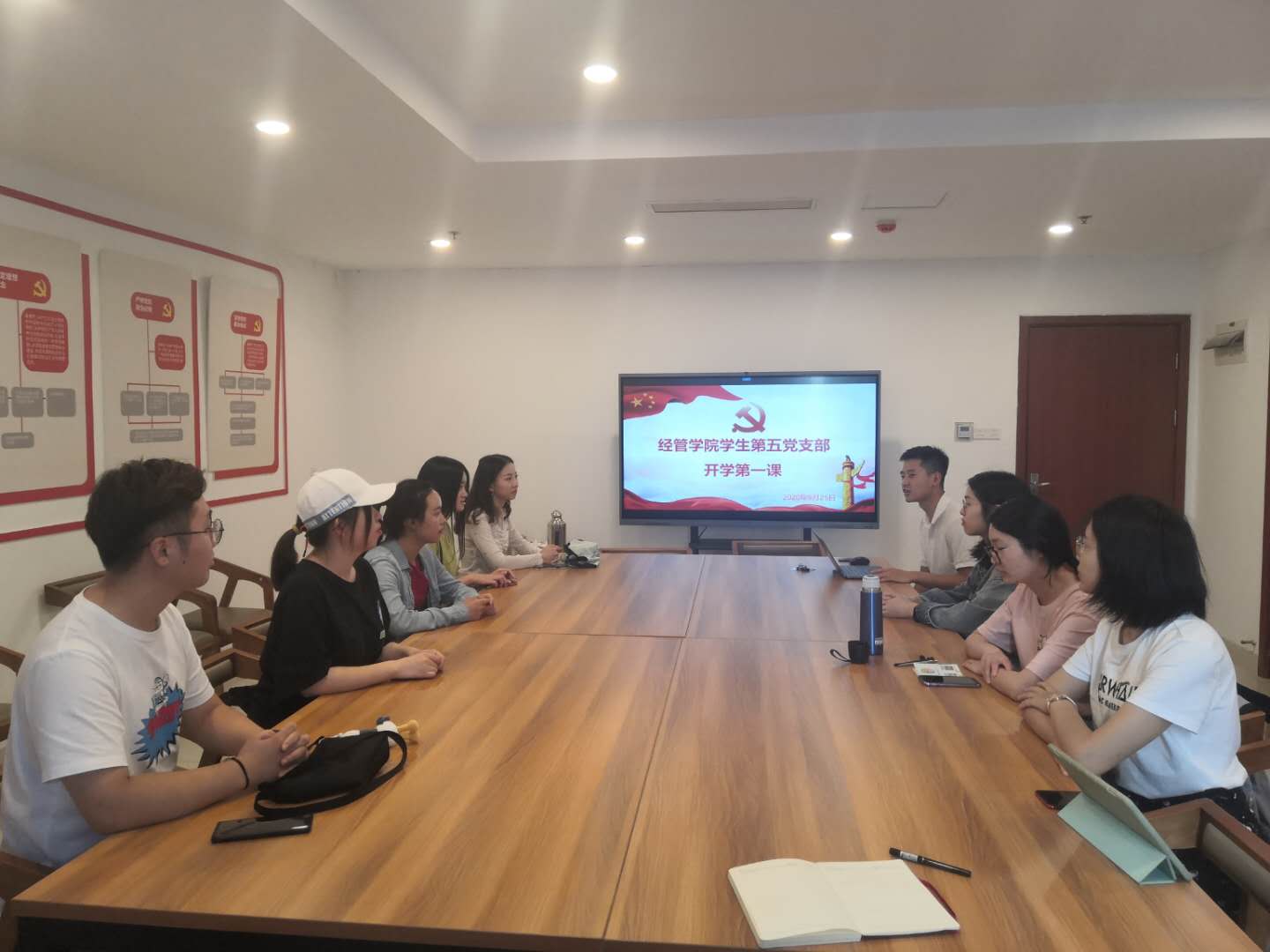 9月25日经管学院学生第五党支部全体党员在恕园1号楼702会议室集中召开学生党员“开学第一课”。此次“开学第一课”由学生第五党支部书记张增辉主讲,学生第五党支部全体党员参加。
