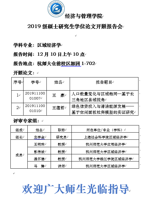 经管学院 2019级硕士研究生学位论文开题报告会预告二