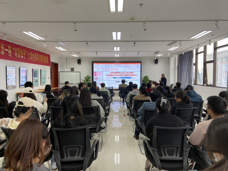 王祖强以“高举中国特色社会主义伟大旗帜,为全面建设社会主义现代化国家而团结奋斗”为题,从过去五年工作和新时代十年伟大变革、开辟马克思主义中国化时代化新境界、新时代新征程中国共产党的使命任务、全面建设社会主义现代化国家的战略部署四个方面对党的二十大报告进行了深入解读和阐释。讲座内涵丰富、重点突出,既有对党的二十大报告原文的精准传达,又有结合实际案例对党的二十大报告作出的通俗易通的讲解,也有对报告中重大理论观点和重大战略思想的深刻领会和独到见解,对于学院未来工作具有很强的指导意义。