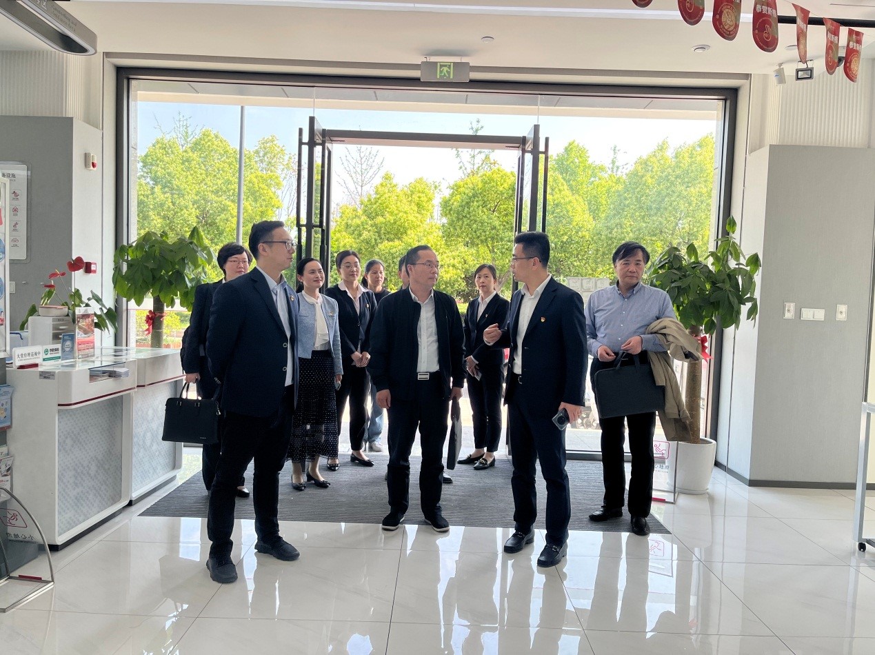 图1:胡部长、余书记一行参观中行余杭支行大楼