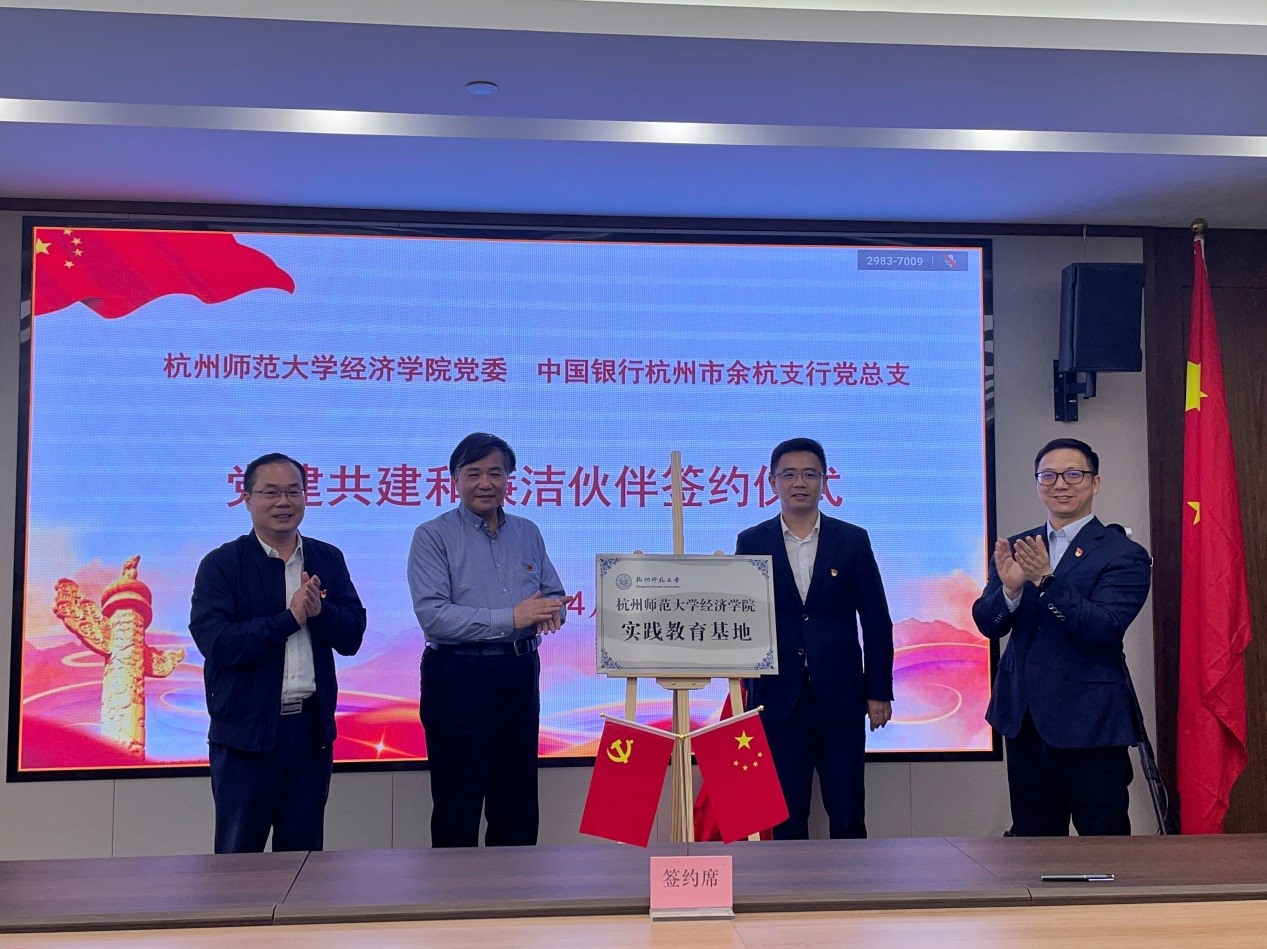 会后,经济学院与中国银行余杭支行签订了党建共建协议和廉洁伙伴协议,并举行了实践教育基地揭牌仪式。