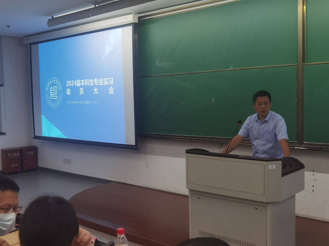 教务科郑含殷老师对专业实习教学管理等方面的要求进行了细致入微的讲解。最后,学院院长助理曾绍龙老师作专业实习总结发言,并向同学们重申实习期间安全问题的重要性。