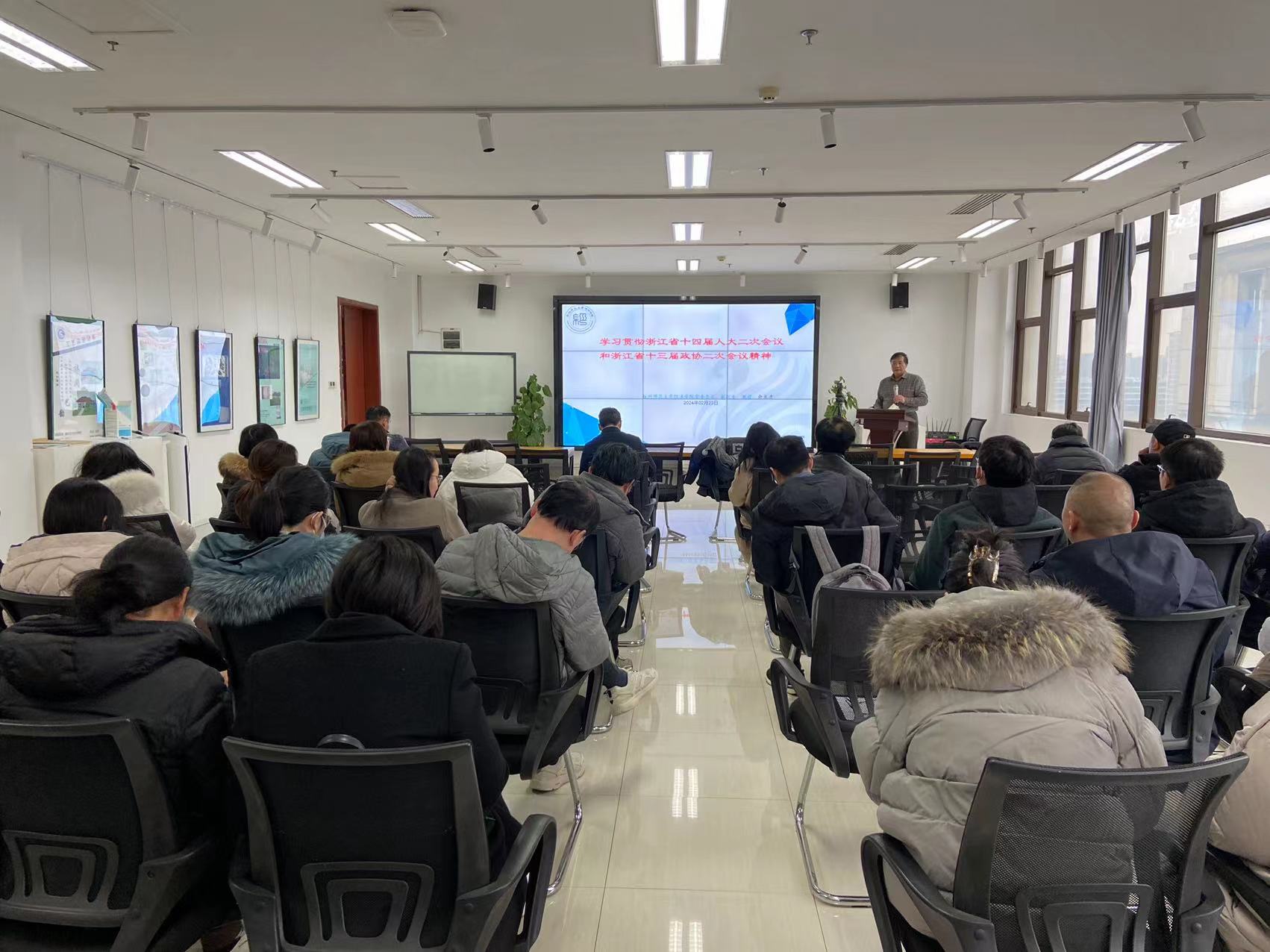 为深入学习贯彻浙江省第十四届人大二次会议和浙江省政协十三届二次会议(以下简称浙江省两会)精神,2月23日下午,经济学院在恕园2-709召开专题学习会,学院党委书记余龙进教授做专题报告,学院全体教职工参会。