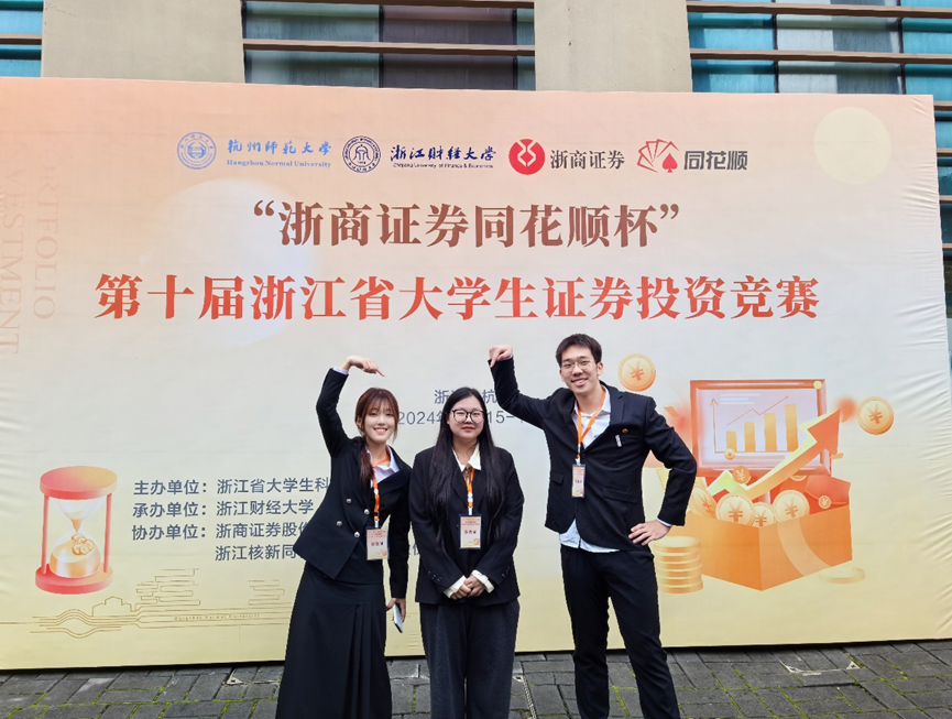 2024年11月15-16日,杭州师范大学经济学院承办的“浙商证券同花顺杯”第十届浙江省大学生证券投资竞赛决赛答辩在我校顺利举行。该竞赛是省级A类竞赛,覆盖全省70多所高校,共计1000多个团队参赛,是培养和选拔金融人才的重要平台。我校师生在团体赛中共获得6项省一等奖、4项省二等奖、7项省三等奖,累计17个团队获奖,其中省一等奖数量取得历史性突破。省一等奖和二等奖的总数位列全省本科高校第二名,获奖率为33.3%,远超过省赛25%的平均水平。此次获奖团队中,有16个团队的指导老师和主要参与学生来自经济学院金融工程专业。