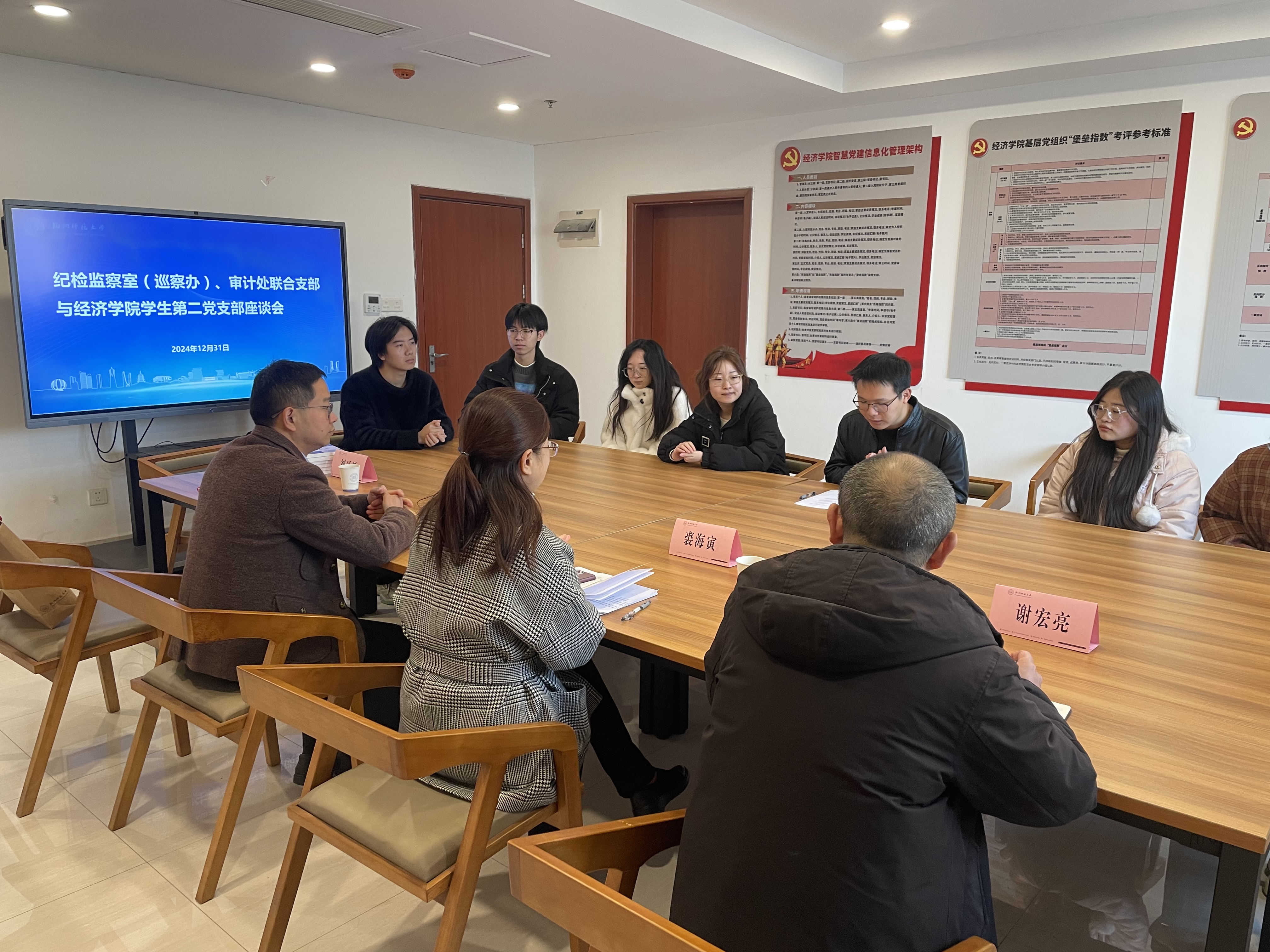 为了促进党支部之间的交流与合作,加强党建工作,探讨解决学生在学习生活上难题。2024年12月31日上午,纪检监察室(巡察办)、审计处联合党支部与经济学院学生第二党支部座谈会在恕园1号楼702室举行。两个党支部党员代表参加本次座谈会。