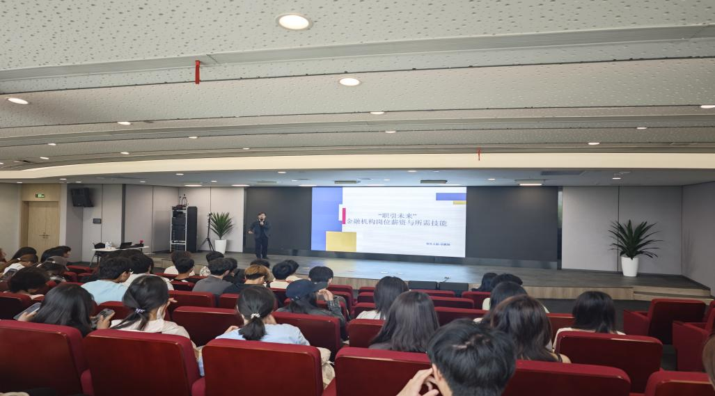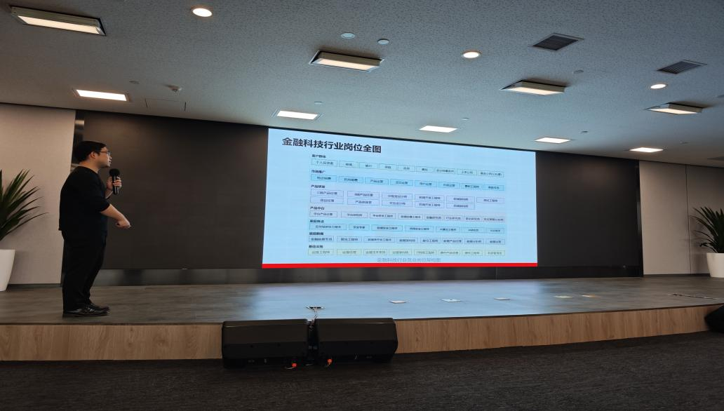 云毅网络的讲解员首先带领同学们首先向同学们介绍了金融机构的运作流程以及常见的岗位,为同学们未来的就业方向提供了思路,同学们对各个岗位的要求有了不同程度的理解,在每个人的心中种下了一个成为真正金融人的梦想。接着云毅网络的讲解员还为同学们介绍了ai在金融中的运用,明确了ai在金融中的重要地位。