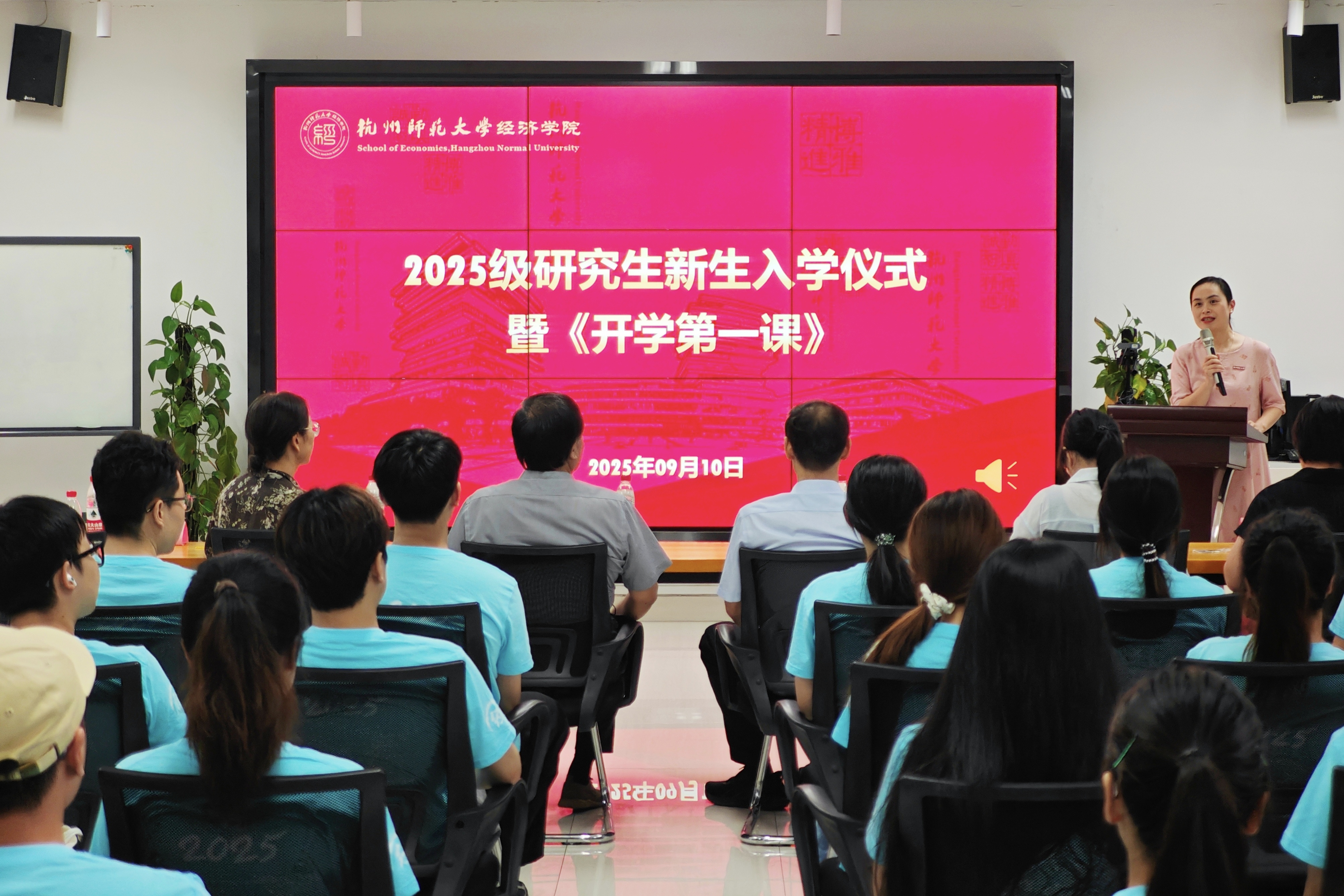 2025年9月10日下午,经济学院于恕园2-709组织开展2025级研究生新生入学仪式暨《开学第一课》。院长王明琳、党委书记余龙进、副院长方湖柳、党委副书记毛卓尔、学术副院长李寒凝,学院导师代表、研究生教学秘书、研究生辅导员、研究生老生代表等出席。2025级42名研究生新生参与此次入学仪式,仪式由党委副书记毛卓尔主持。