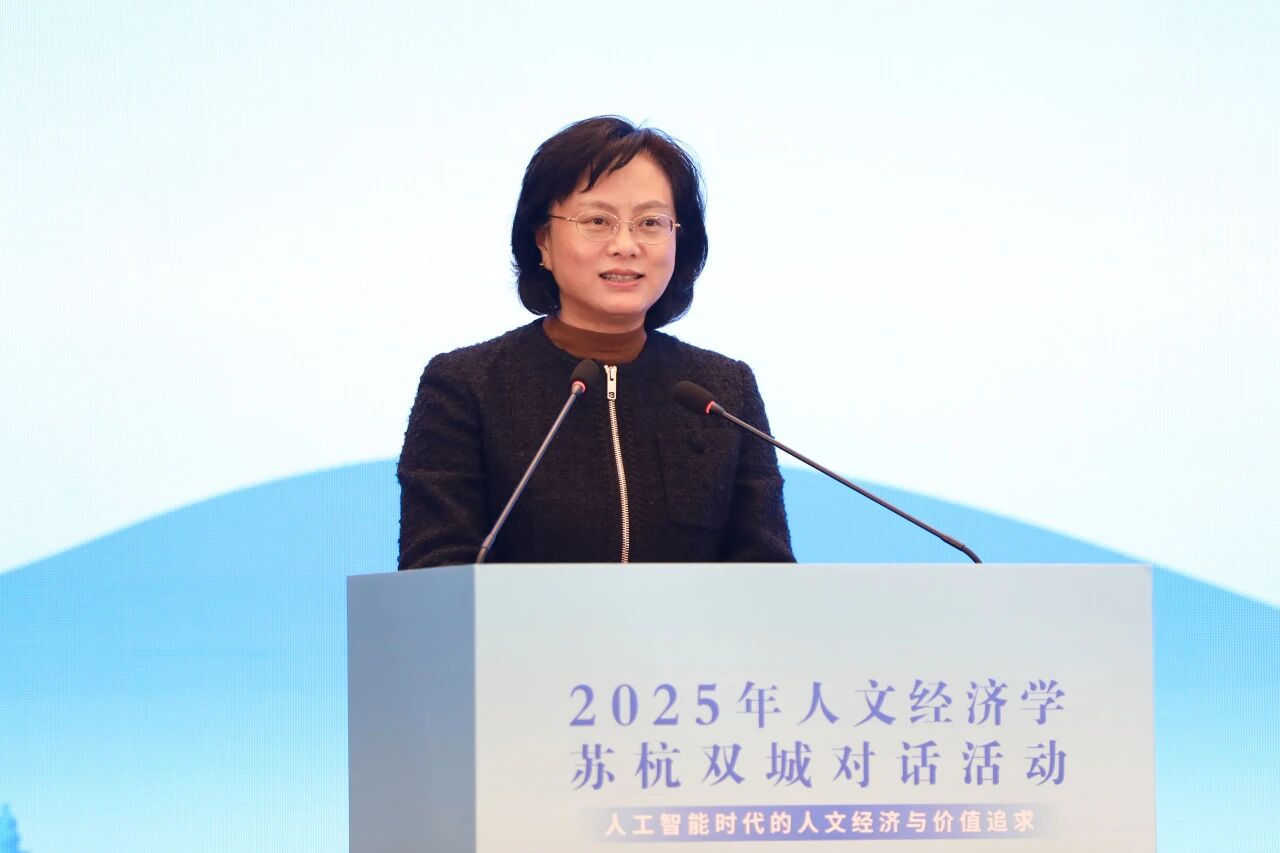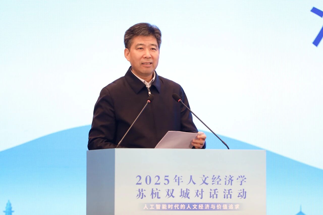 为深入学习贯彻习近平总书记关于人文经济学的重要论述,进一步深化苏州、杭州在人文经济学领域的学术交流与协同合作,11月17日,2025年人文经济学苏杭双城对话活动在苏州举办。活动以“人工智能时代的人文经济与价值追求”为主题,由杭州师范大学与苏州大学、浙江大学、中国人民大学苏州校区共同主办。经济学院代表杭州师范大学承担承办工作。