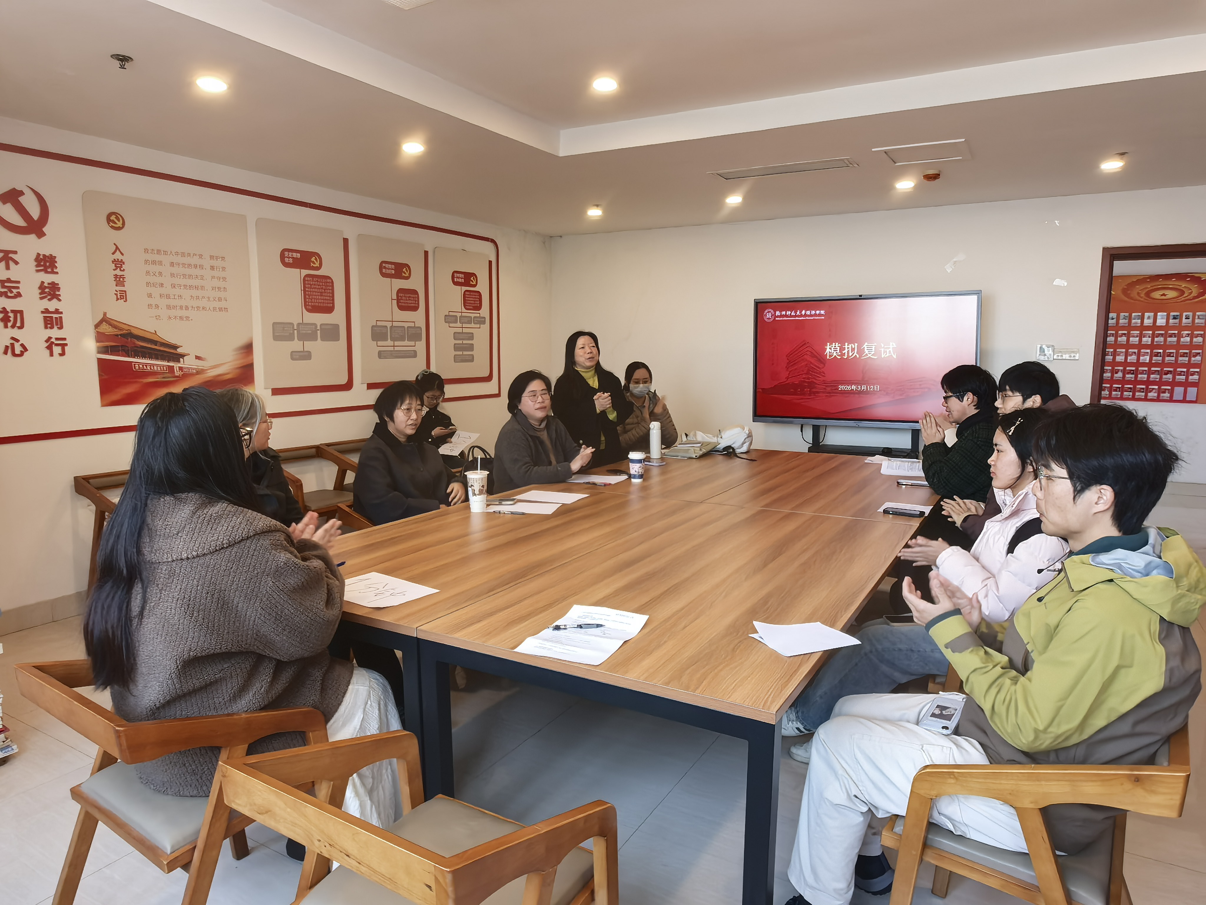 模拟复试现场,考生们着装得体、精神饱满,严格按照正式复试流程依次入场,依次完成中文自我介绍、英文问答、专业知识阐述及综合能力应答等环节。面对考官们的精准提问和连环追问,学子们沉着应对、积极思考,充分展现了自身的专业基础和备考成果;部分学子在应答过程中暴露的逻辑不够清晰、专业表达不够精准、临场应变能力不足等问题,也被考官们及时记录。